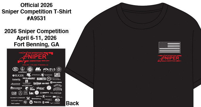$19.99The official 2026 U.S. Army Sniper Competition t-shirt! 100% ring-spun cotton. Left and back print. M, L, XL, 2X. Black.A9531 -